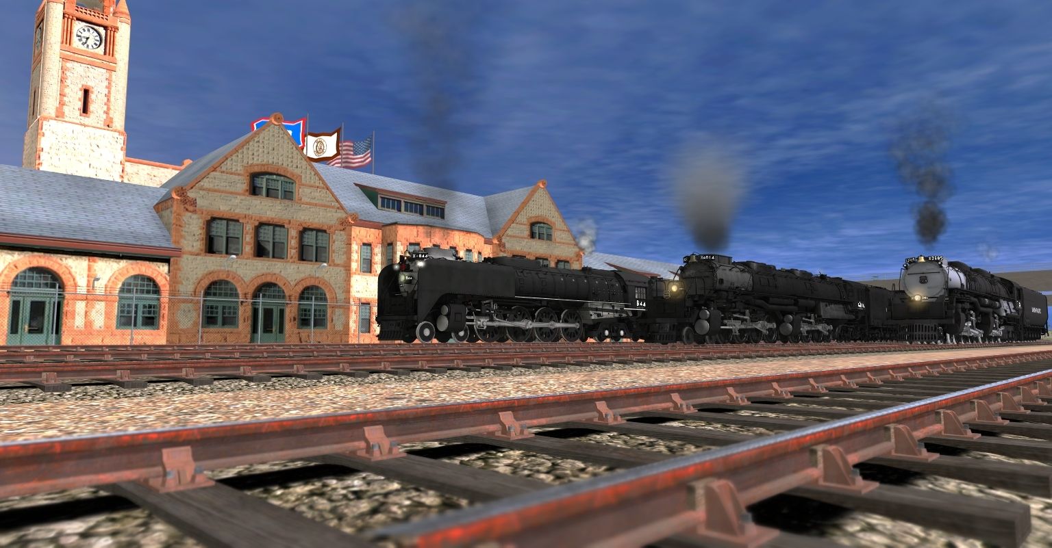 Tags: Trainz: A New Era, Sherman Hill vers 3.1, UP Class FEF-3 Modern, Union Pacific Big Boy 4014 Engine, UPRR Challenger, UP Class FEF 23-C Oil Tender Black, Union Pacific Big Boy 4014 Tender, UPRR Centipede tender coal