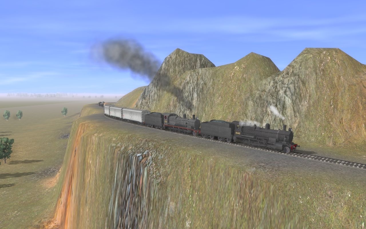 Tags: Trainz: A New Era, New Route Trial Run Steam, Default, NSWGR D55 standard goods - black, NSWGR D53 class Loco, NSWGR D50 class tender, NSWGR D53 class tender, NSWGR TRC Refrigerated Van 1955, NSWGR refrigerated van, NSWGR NQOX Flat Car, NSWGR NQO Flatcar, NSWGR NTAF Golden Fleece, NSWGR/Caltex 9000Gal Tank Wagon, NSWGR SHG Guards Van - BLack