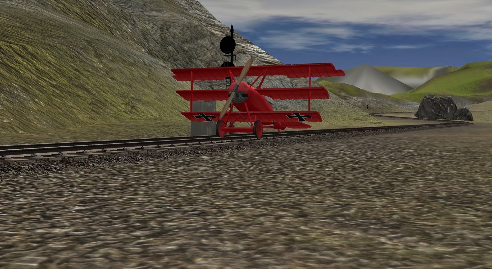 Posted by: jakethegs4 | Posted:2020-11-20 00:53:16 Caption: The Red Baron In Kickstarter County Tags: Trainz: A New Era, Kickstarter County, Fokker DR1 Startup