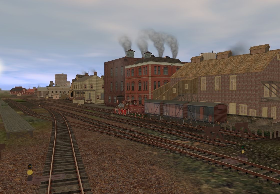 Tags: Trainz: A New Era, A- Black River RR, Hammond Beef, V & T loco no 4 (Virginia) - as built, 0-4-0T Jay Street Connecting #1, V & T boxcar 1007 (1902+), V & T loco no 4 tender (as built), Bucknall's Flour Mills, BR standard van, V & T boxcar 1005 (1902+), VR U Van Type 2 - White, ESSO Tank Wagon