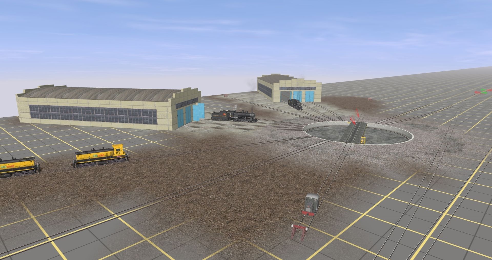 Tags: Trainz: A New Era, Port Roo Central, Ruston & Hornsby 48DS Shunter Knuckle Coupler, AICX SW1500, WM I1 Decapod Engine V3, Erie J-2 Engine V1, WM I1 Decapod Tender V3, Erie J-2 Tender