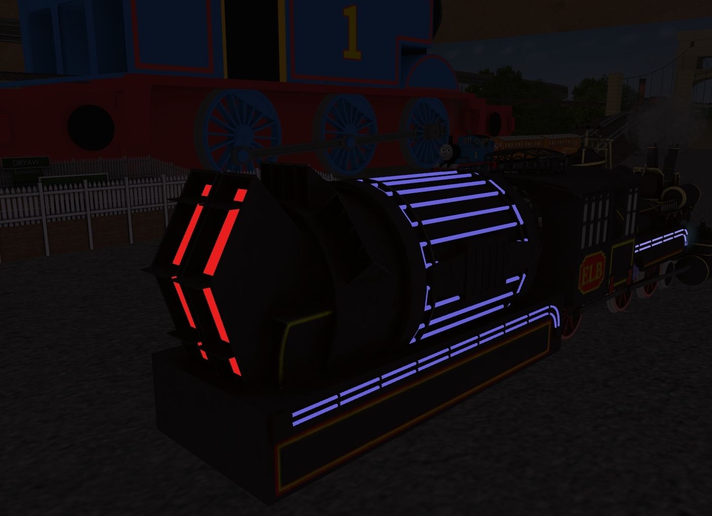 Tags: Trainz Railroad Simulator 2019, Sodor Workshops - Test Track V2, BTTF - Jules Verne Train, TTTE - Thomas The Tank Engine [TRS19], BTTF - Jules Verne Train Tender, TTTE - Small China Clay Truck, TTTE - Annie [TRS19], TTTE - Clarabel [TRS19]