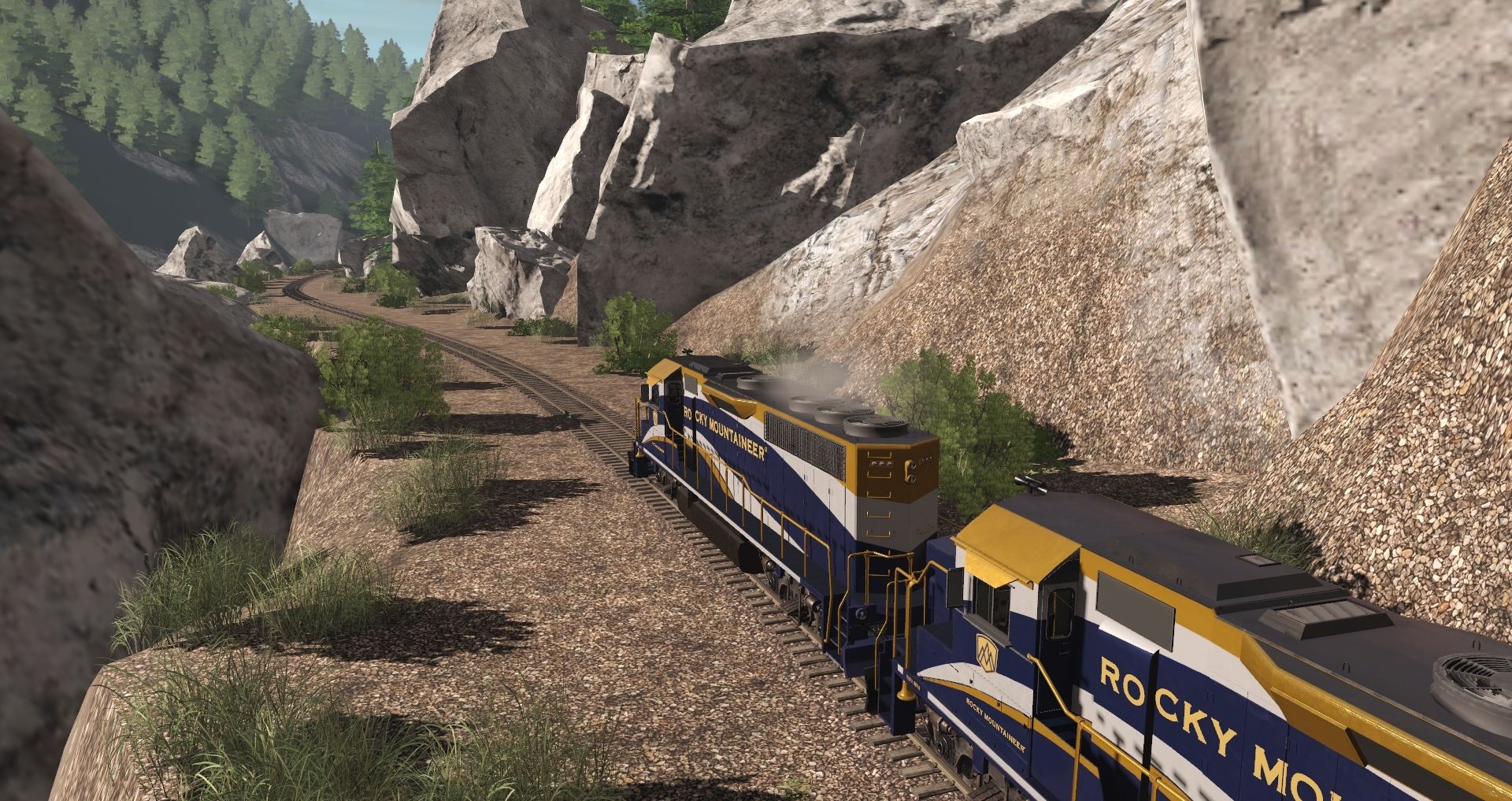 Tags: Trainz Railroad Simulator 2019, Canadian Rocky Mountains - Golden BC, 01 Rocky Mountaineer - Westbound Tourist, RMRX GP40-2, RMRX Baggage/Generator, RMRX 'Red Leaf' Coach, RMRX 'Silver Leaf' Glacier Dome, RMRX 'Gold Leaf' Ultra Dome