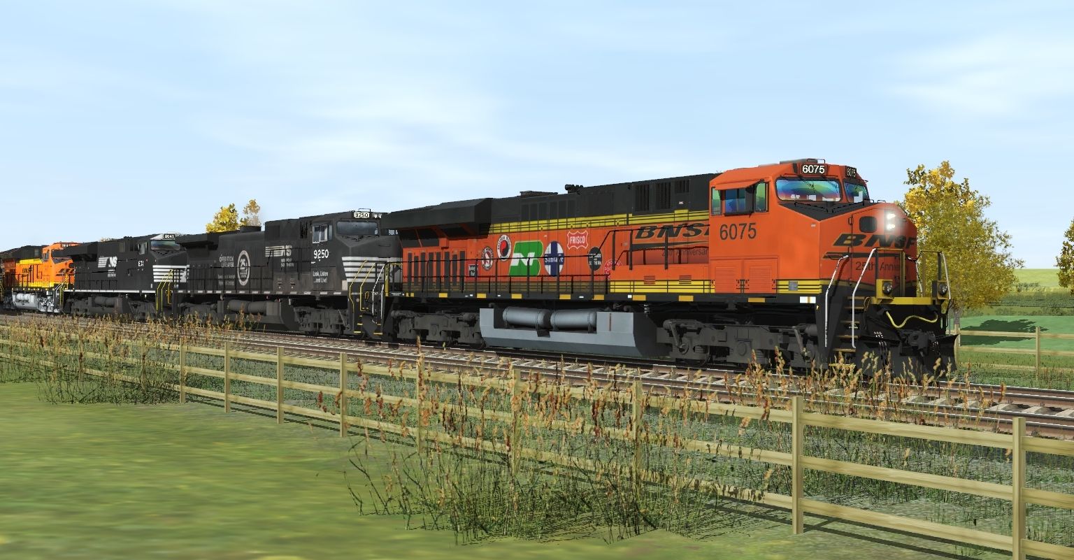 Tags: Trainz Railroad Simulator 2019, ECML Kings Cross - Edinburgh, ISAIAH, BNSF 25th Anniversary ES44AC, NS C40-9W OLS 25th Anniversary, NS ES44AC, BNSF ET44C4, NS AC44C6M #4002, BNSF ES44DC Faded, NS Horsehead C40-9W, 53ft DTTX Wellcar (Single), 53ft DTTX Wellcar Weathered (Single), 89ft Autorack Tri-Level CN # 535168, 89ft Autorack Tri-Level SOO # 594559
