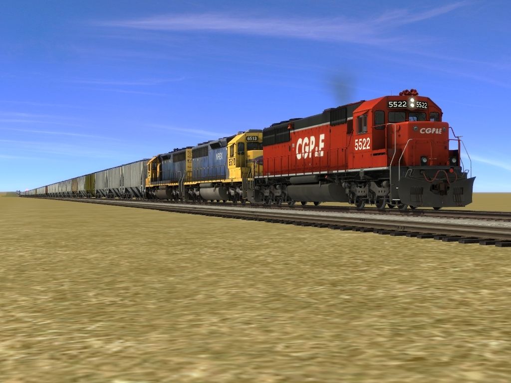Tags: Trainz: A New Era, CGP&E Western Sub, Default, CGP&E SD50 v1, NREX ex-ATSF SD45-2u, CGP&E Trinity 3 Bay Hopper, CGPE v3 Trinity 3 Bay Hopper, CGP&E v2 Trinity 3 Bay Hopper, CGP&E v4 Trinity 3 Bay Hopper
