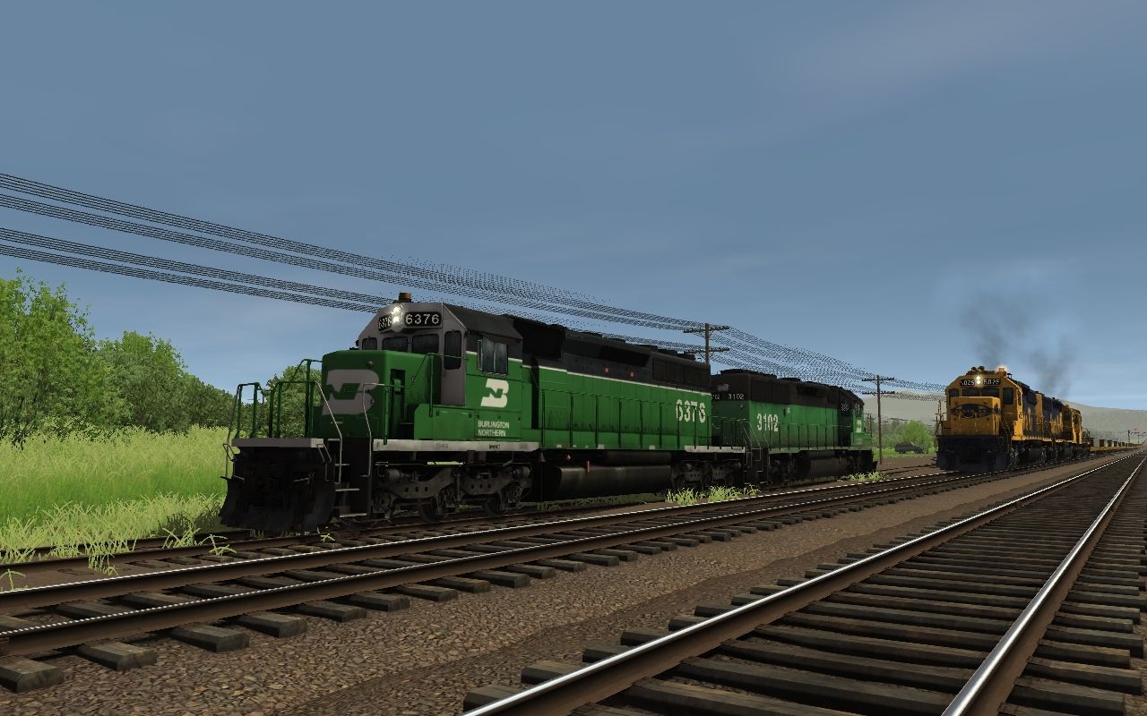 Tags: Trainz: A New Era, ATSF Transcon - Maine AZ Crossing, BN SD40-2 WhiteFace Stripe, BN GP50 Ph. 1 Ex. Frisco, ATSF SD40-2 2a 123 inch short hood, ATSF SD45-2 blue/yellow warbonnet, ATSF GP35u #2964, TTX 89ft TOFC Flatcar