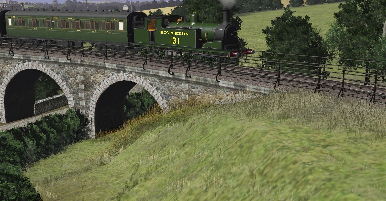 Tags: Trainz Railroad Simulator 2019, Dearnby & District : UK 1900's-1910's Mainline Branchline & Narrow Gauge V2.0, SR Drummond M7 - Olive Green, SR (ex-LSWR) 54 ft Corridor Composite CK (D1214) - Olive, SR (ex-LSWR) 54 ft Corridor Composite CK (D1225) - Olive, SR (ex-LSWR) 56 ft Corridor Brake Third BTK (RH) - Olive, NCB 7 plank wagon 2 broken
