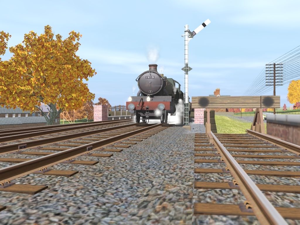 Caption: 7819 pulls up under the signal just outside the goods depot at Long Marton station at the end of her journey.