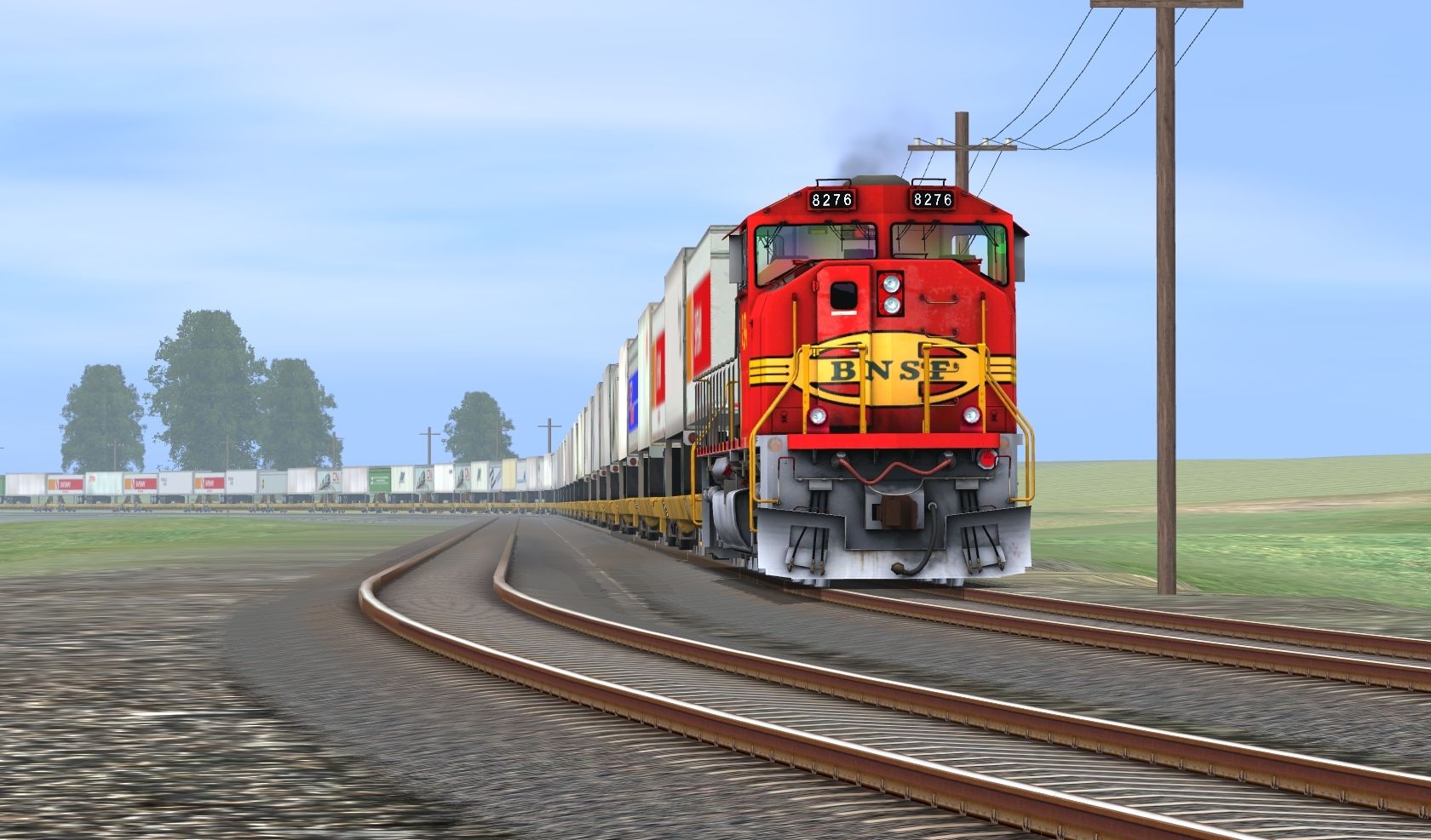 Tags: Trainz: A New Era, Marias Pass Approach, Flying Cam, BNSF SD75I, TTX 89ft TOFC Flatcar