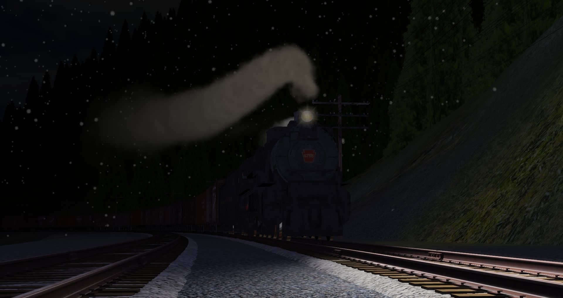 Tags: Trainz: A New Era, Marias Pass Route 1950s, Marias Pass Route 1950s Base Session, PRR M1b Engine, PRR I1sa Engine Post-War, PRR M1b Tender, 40ft Boxcar DL&W Phoebe Snow Weathered, 40ft ATSF DD Boxcar #6361, 40ft Boxcar CB&Q, 40ft Boxcar CN Early Leaf, 40ft Boxcar Fowler NYC MCRR 1, 40ft Boxcar Fowler BAR 1, 40ft Boxcar SAL, 40ft Boxcar UP B-50-24