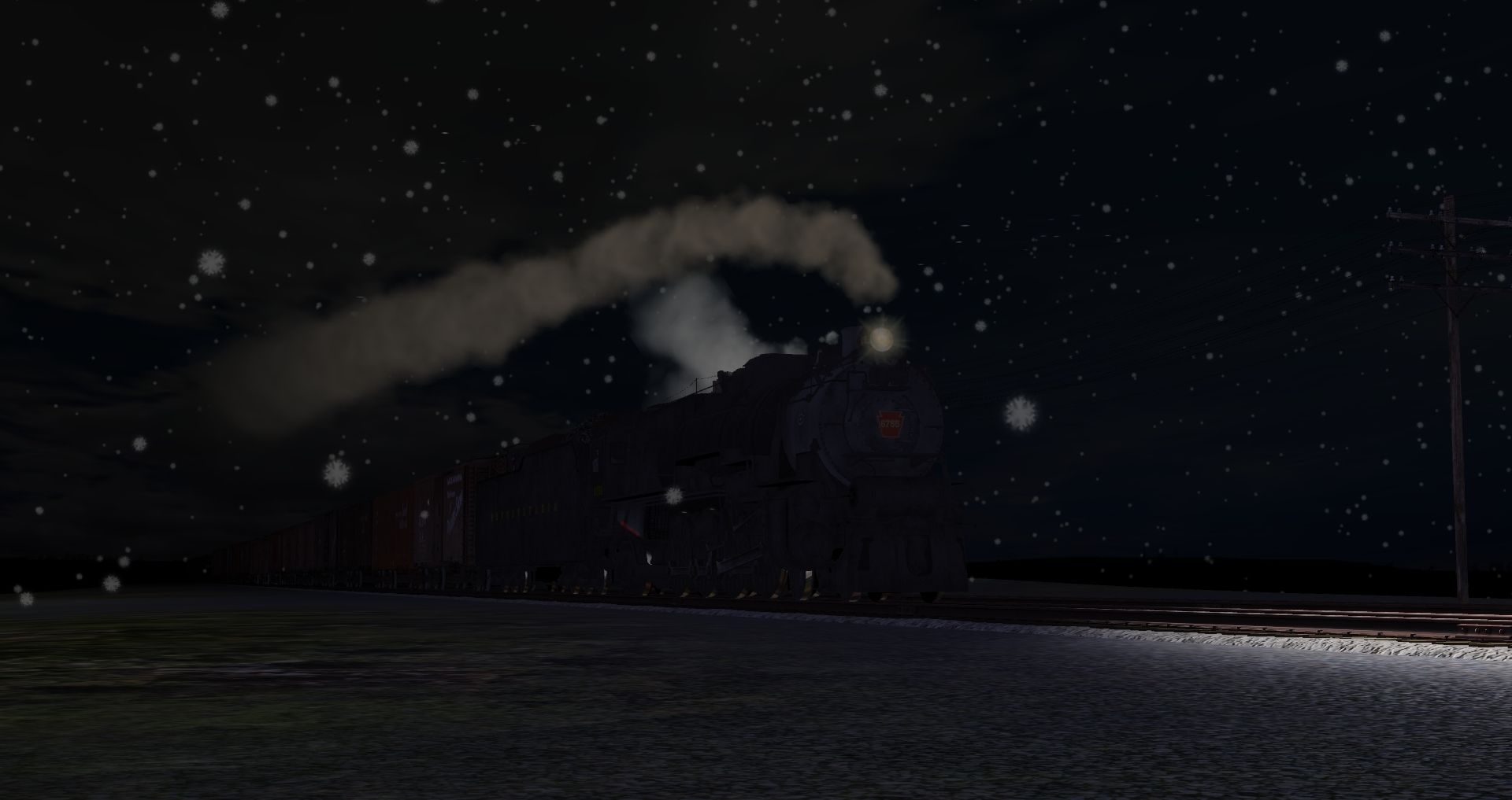 Tags: Trainz: A New Era, Marias Pass Route 1950s, Marias Pass Route 1950s Base Session, PRR M1b Engine, PRR M1b Tender, 40ft Boxcar DL&W Phoebe Snow Weathered, 40ft ATSF DD Boxcar #6361, 40ft Boxcar CB&Q, 40ft Boxcar CN Early Leaf, 40ft Boxcar Fowler NYC MCRR 1, 40ft Boxcar Fowler BAR 1, 40ft Boxcar SAL, 40ft Boxcar UP B-50-24, 40ft Boxcar DL&W Late