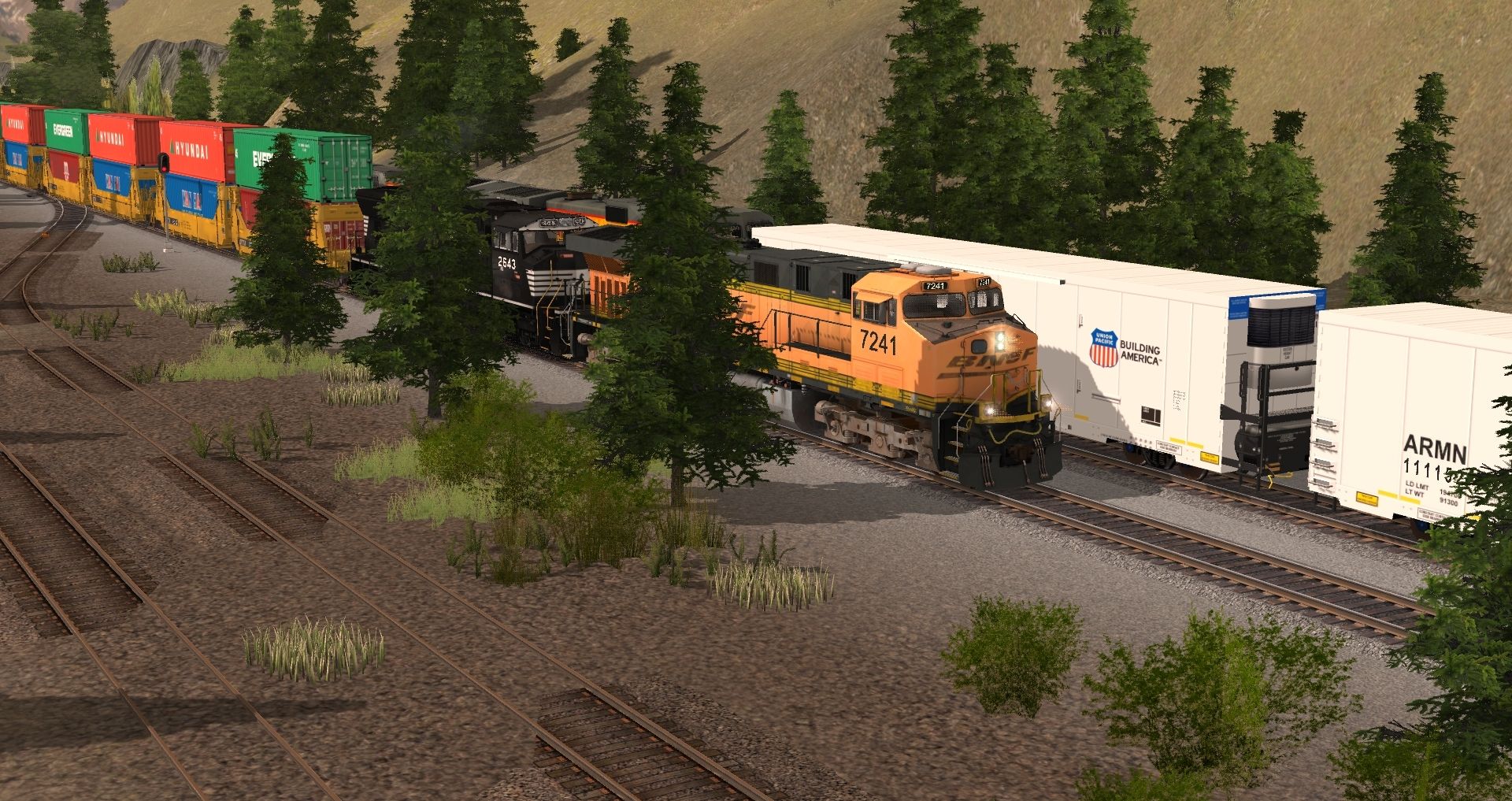 Tags: Trainz: A New Era, BNSF FALL RIVER DIVISION, BNSF FALL RIVER DIVISION - SESSION 01, BNSF ES44DC Faded, UP Dash 9-44CW-Lightning Stripe, NS SD70M Notched Nose Loco, UP AC6000CW ph3, UP SD70ACe, UP SD70M Flared Radiator, Reefer trinity trincool 64ft ARMN DES, TTX Gunderson Wellcar Unit A, TTX Gunderson Wellcar Unit B, ARMN PCF 57' Reefer, BNSF 48 Husky Stack Early