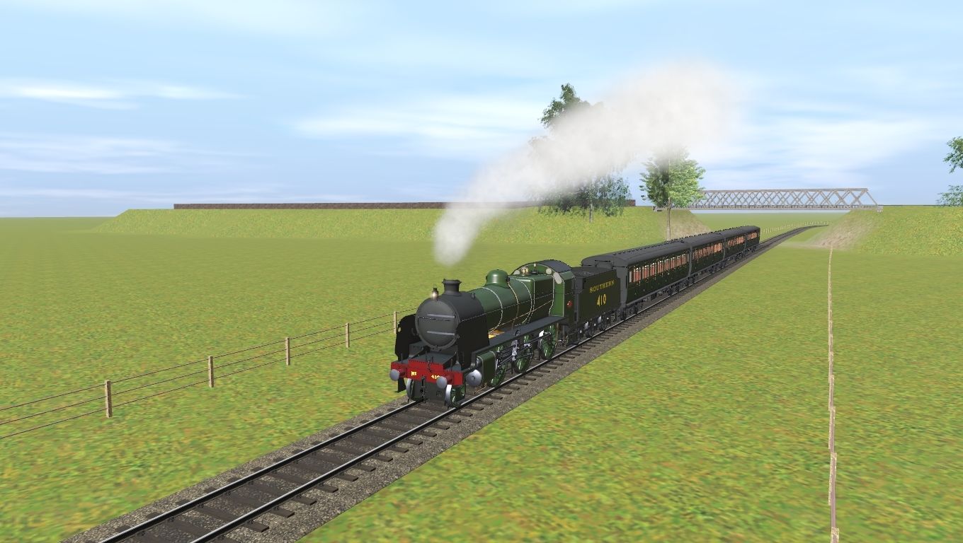 Tags: Trainz Railroad Simulator 2019, LBSCR2, LBSCR2 - Default, SR Maunsell N Class - Olive green (deflectors), SR Maunsell 3500 Gal Tender - Olive Green, SR (ex-LSWR) 56 ft Corridor Third TK - Olive, SR (ex-LSWR) 56 ft Corridor First FK - Olive, SR (ex-LSWR) 56 ft Corridor Brake Tri-Composite BCK - Olive