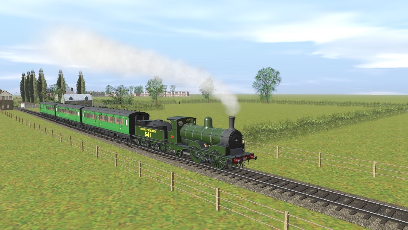 Tags: Trainz Railroad Simulator 2019, LBSCR2, LBSCR2 - Default, SR Adams A12 ''Jubilee', SR Adams Tender - Olive Green, SR (ex-LSWR) 54 ft Corridor Composite CK (D1214) - Malachite, SR (ex-LSWR) 54 ft Corridor Composite CK (D1225) - Malachite, SR (ex-LSWR) 56 ft Corridor Brake Third BTK (RH) - Malachite