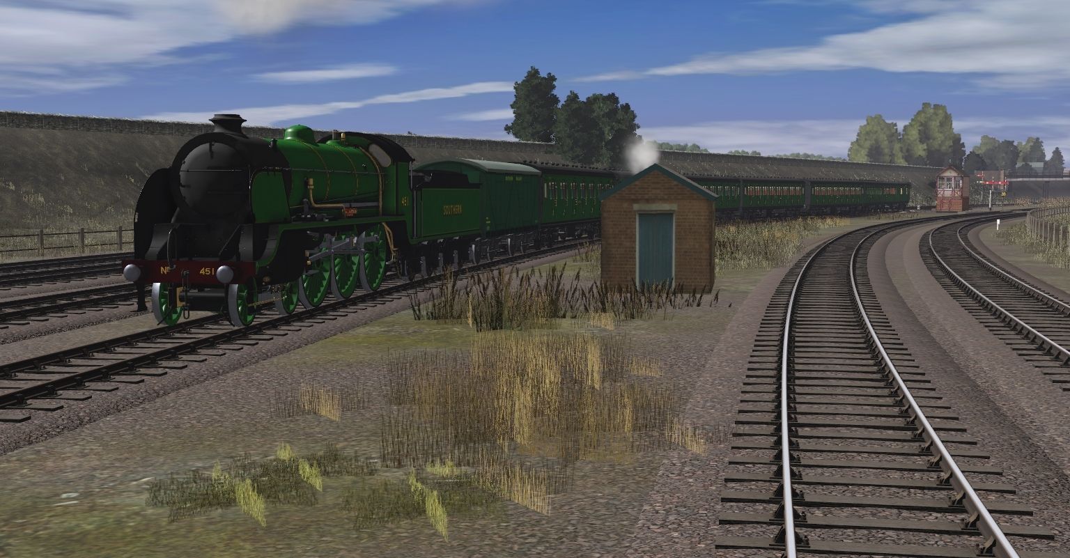Tags: Trainz Railroad Simulator 2019, Dearnby & District : UK 1900's-1910's Mainline Branchline & Narrow Gauge V2.0, SR Urie/Maunsell N15 'King Arthur' - Eastleigh 1st Batch malachite, LMS Duchess Black post-war, SR Urie Tender - Malachite Green, SR 30 foot van, SR (ex-LSWR) 56 ft Corridor First FK - Malachite, SR (ex-LSWR) 56 ft Corridor Third TK - Malachite, SR (ex-LSWR) 54 ft Corridor Composite CK (D1214) - Malachite, SR (ex-LSWR) 56 ft Corridor Brake Third BTK (LH) - Malachite, LMS Duchess Black Tender, LMS P1 BG (D1778) Passenger Brake, LMS P1 SLF (D1705) First Class Sleeping Car