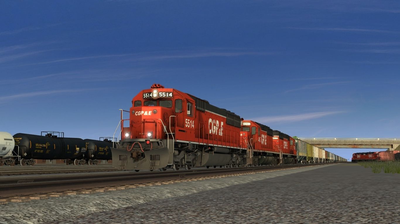 Tags: Trainz: A New Era, CGP&E Western Sub, Default, CGP&E SD50 v1, CGP&E SD40-2, CGP&E 4030 SD40-2, CGP&E GP38-2 v1, T108 NATX 303300-303528 TRN 30120 gal, STLX 2106 5188 3 bay, T108 TILX 193251-193550 TRN 30120 gal, SSW Centerflow 3 Bay long hatch, UTLX 46991 20800 gal tank car, UTLX 23000 gal Funnel-Flow tank car, UTLX 23000 gal Funnel-Flow tank car Terra