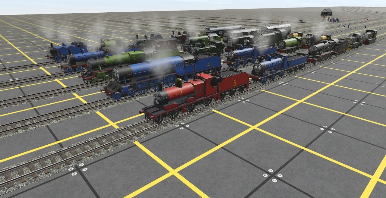 Tags: Trainz Railroad Simulator 2019, Railway, Railway - Default, RWS James - NWR w/sandboxes (Current Livery), RWS Gordon (Rebuilt - Post-1939), RWS Douglas (NWR Blue), RWS Henry (New Shape), RWS Donald (NWR Blue), RWS Edward (Current Shape - no siderods), RWS Duck (NWR Sandboxes), RWS Toby (Current NWR Livery), Peter the Heavy Goods Engine, RWS Thomas (New Shape), RWS Devious Diesel (Post-2011)