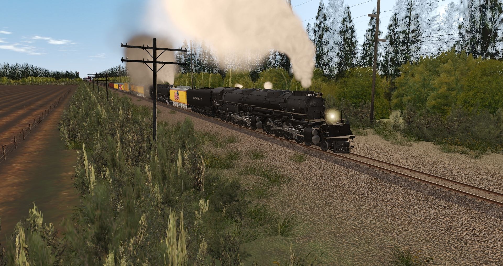 Tags: Trainz Railroad Simulator 2019, New Route, New Route - Default, Union Pacific Big Boy 4014 Engine, UPRR FEF-3 844, UP ES44AC, Union Pacific Big Boy 4014 Tender, UP Auxiliary Tender 809 (Jim Adams) SR, UPRR FEF Black oil tender, UP Auxiliary Tender 814 (Joe Jordan) SR, UP 60' ACF Boxcar, UP Baggage Car 5769 Flag, up baggage 5772, BNSF 100 Ton Hopper