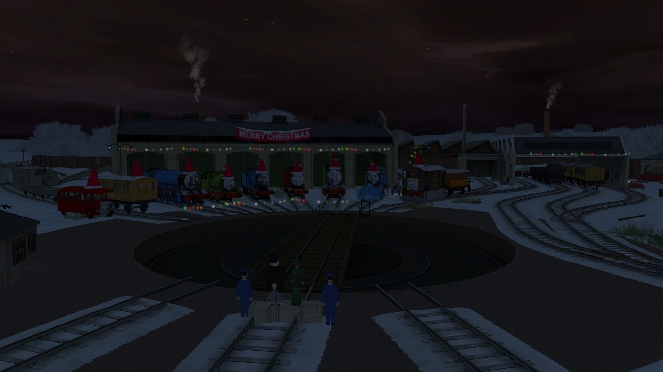 Tags: Trainz: A New Era, IoS - The Kellsthorpe Extension (Snow), Thomas' Christmas Party (Final Scene b), Flying Cam, Bertie the Bus Baked, Gordon The Big Blue Engine 2010, Percy The Small Engine 2010, Toby The Tram Engine 2010, Edward The Blue Engine 2010 S1, James the Red Engine 2010, Henry The Green Engine (Old Shape) 2010, Thomas The Tank Engine 2010, Clarabel, Sodor Snowplough Light Blue (ver.1) (Snow off)