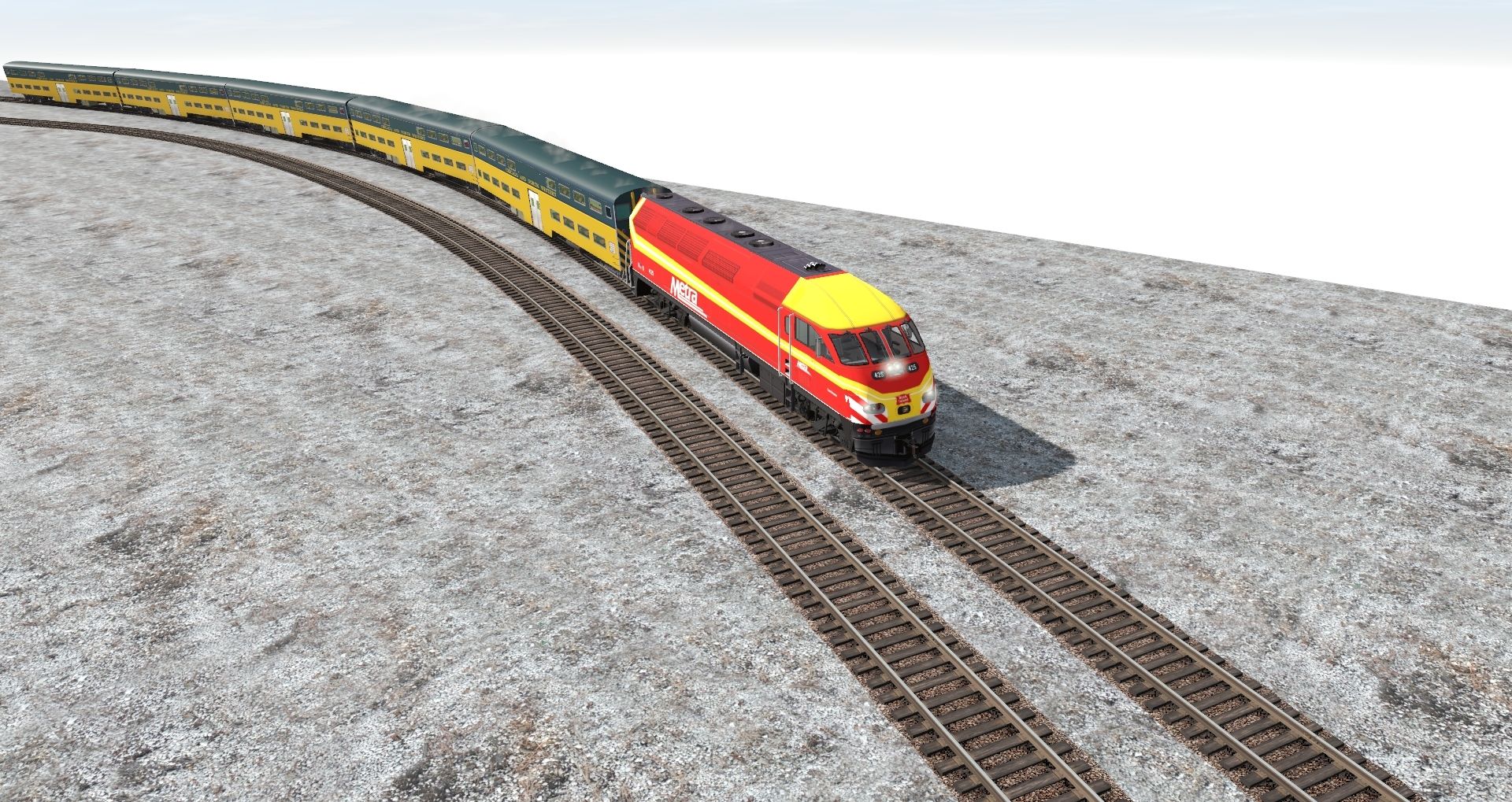 Tags: Trainz Railroad Simulator 2019, SP/UP/BN/ATSF/DRGW/AMTRAK/ ( Canjo subdivision), SP/UP/BN/ATSF/DRGW/AMTRAK/ ( Canjo subdivision) - Default, Metra MP36PH-3C #425 - Don Orseno, CNW bi-level push-pull cab car II