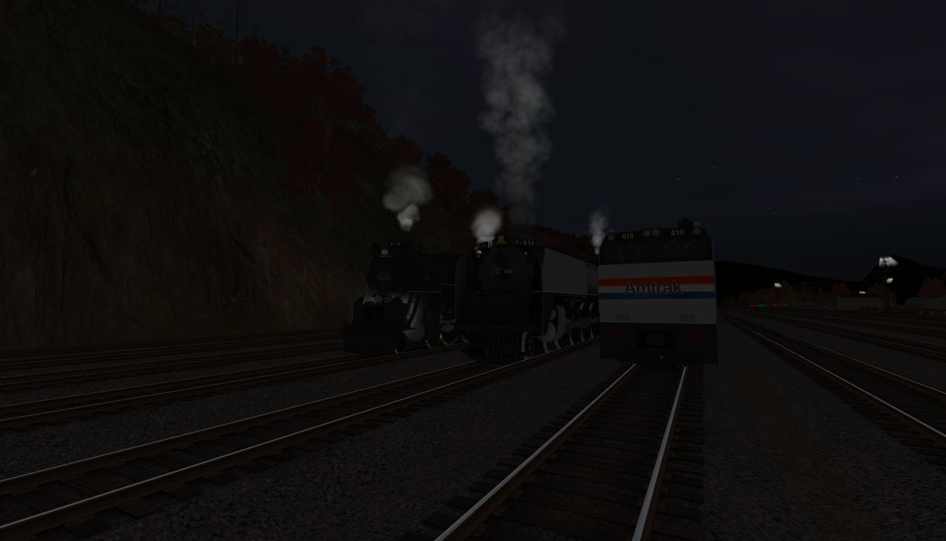 Tags: Trainz: A New Era, C&O Hinton Division, UPRR FEF-3 836, Amtrak E60CP #610, C&O 614 Engine, C&O 614 Tender Excursion, UPRR FEF TTG-Y oil tender