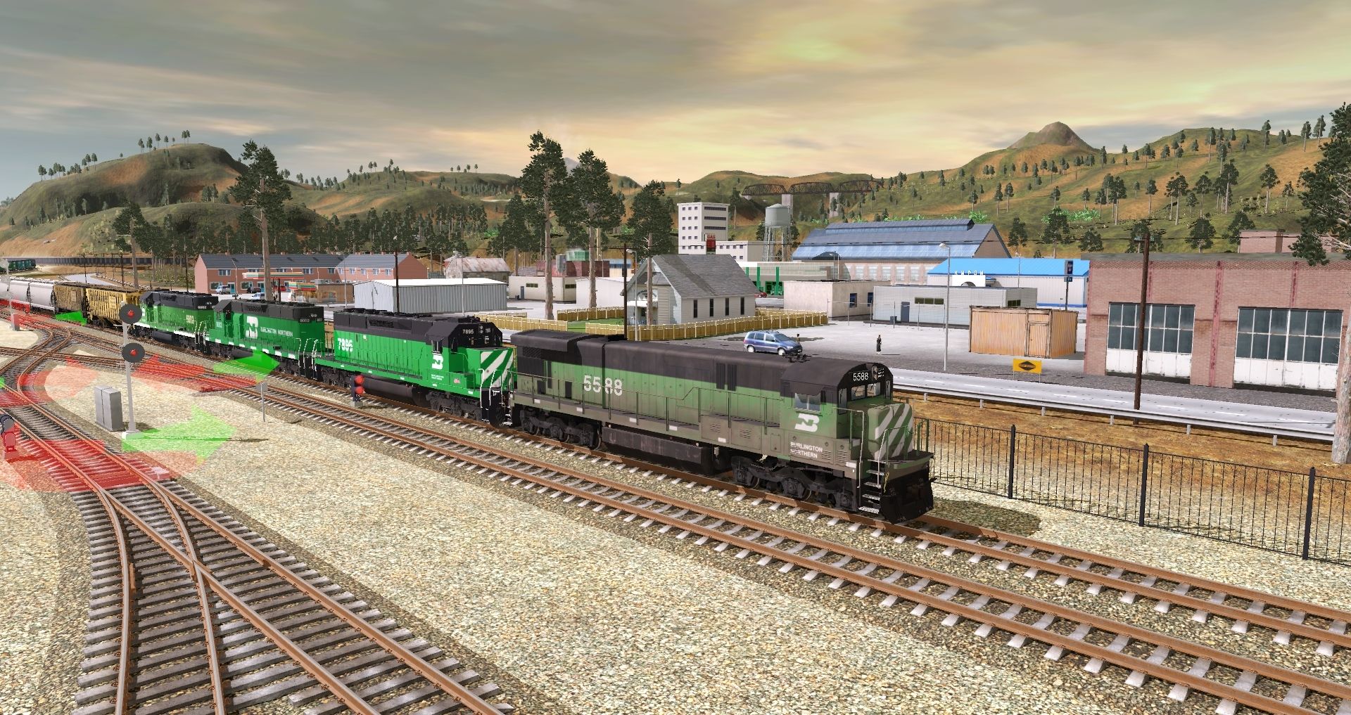 Tags: Trainz Railroad Simulator 2019, Kickstarter County 2, Default, BN C30-7, EMD SD40-2 BN #7895, EMD SD40-2 BN #8002, EMD SD40-2 BN #6802, BN SW1500 (flexicoil), CR GP38-2, SD9_Burlington, MILW LO 4750 3 bay, JRPX ACF Centerflow 4 Bay round hatch, Mill Gondola 52' Railgon, MRL 60Ft.9In. woodchip gondola