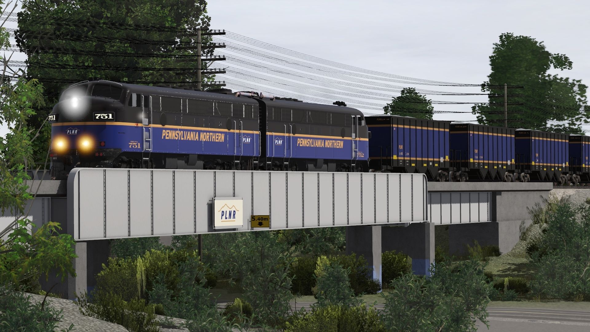 Tags: Trainz Railroad Simulator 2019, Pennsylvania Northern, Default, PLNR F9A #751, PLNR F9A #752, PLNR M-3 Woodside Caboose, PLNR H1K Trinity Hopper