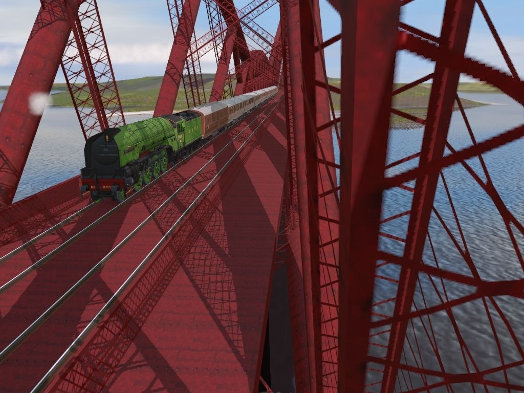 Caption: Cock `O' The North making her way across the Forth bridge in Scotland