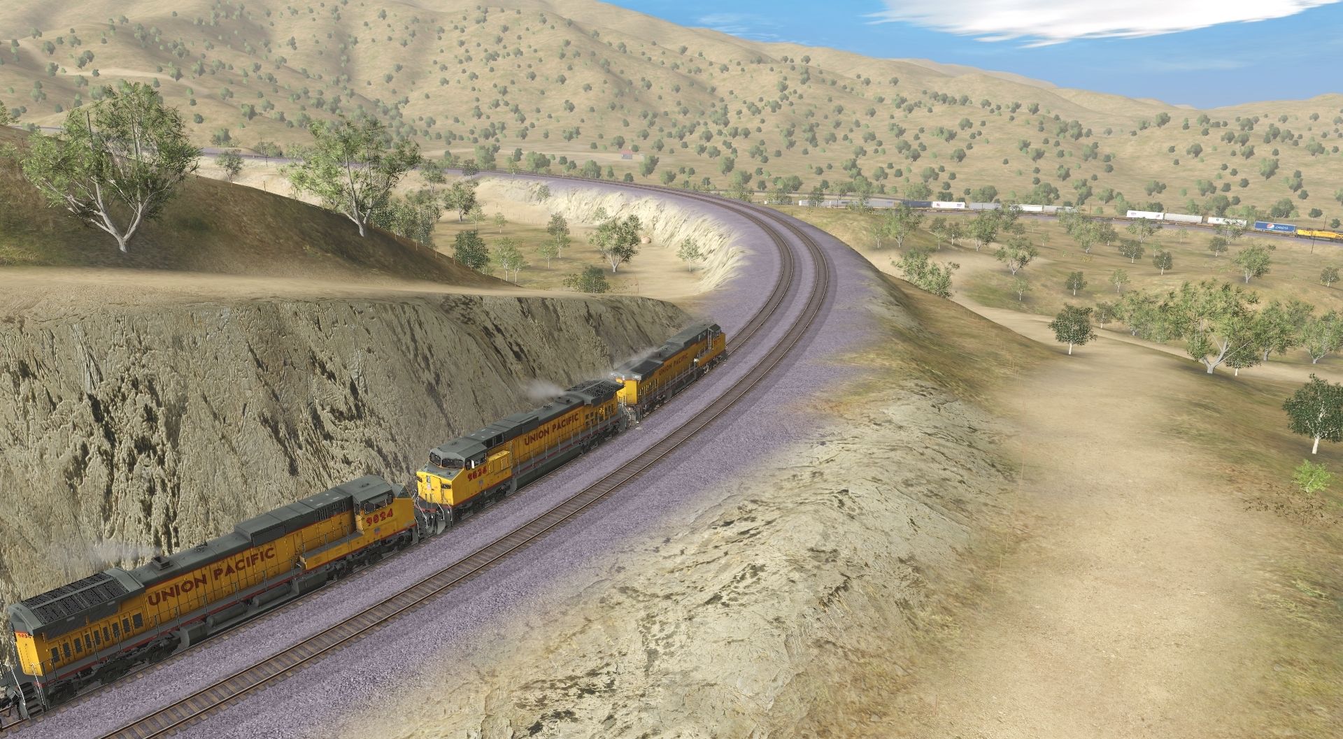 Tags: Trainz Railroad Simulator 2019, Mojave Sub Division, UP Stack, CNW C44-9W, UP Dash 9-44CW, UP C44-9W (ex-CNW) LS, UP SD40-2, UP Dash 9-44CW-Lightning Stripe, UP SD60M(Triclops), UP SD70M Letters, UP SD70M Flared Radiator Loco, Well car Gunderson Unit E BNSF BX RED, Well car Gunderson Unit D BNSF BX RED, Wellcar Gunderson Unit B BNSF DES