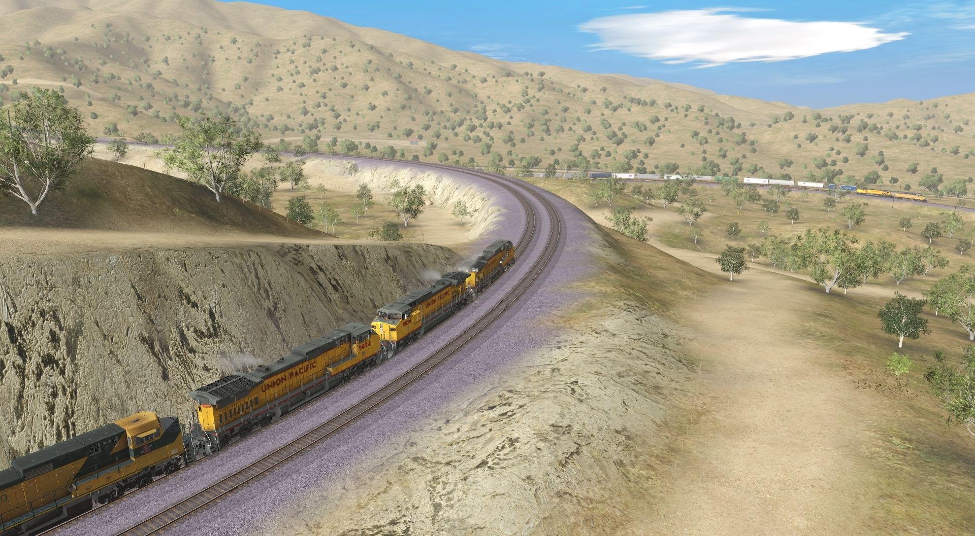 Tags: Trainz Railroad Simulator 2019, Mojave Sub Division, UP Stack, CNW C44-9W, UP Dash 9-44CW, UP C44-9W (ex-CNW) LS, UP SD40-2, UP Dash 9-44CW-Lightning Stripe, UP SD60M(Triclops), UP SD70M Letters, UP SD70M Flared Radiator Loco, Well car Gunderson Unit E BNSF BX RED, Well car Gunderson Unit D BNSF BX RED, Wellcar Gunderson Unit B BNSF DES