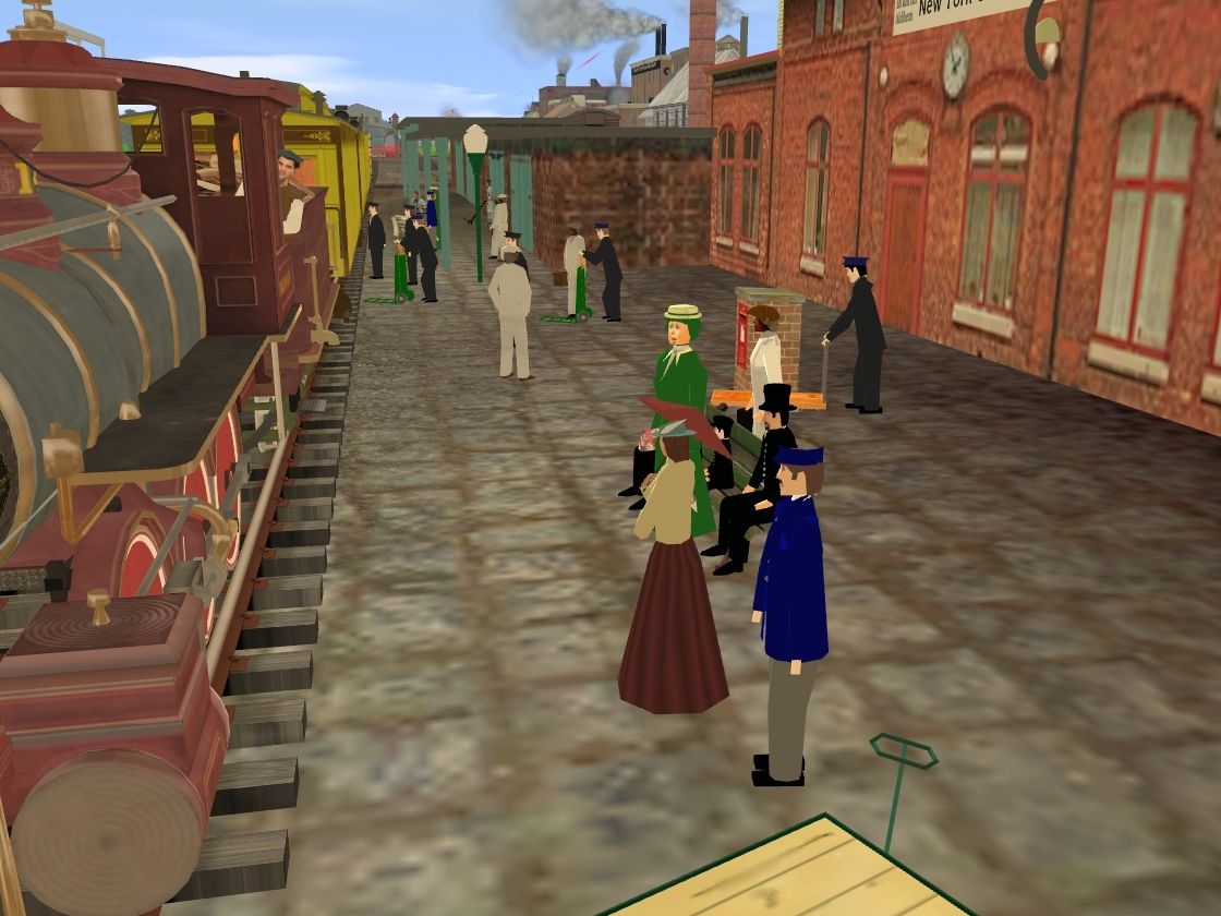 Tags: Trainz: A New Era, A _Black River & Utica RR, Default, V & T loco no 14 (Esmeralda) ca 1870's, 0-4-0T Jay Street Connecting #1, V & T loco no 14 tender ca 1870's, V & T Coach No 3, V & T Baggage / Mail Car No 2, V & T Caboose No 10 1873, BR standard van, RPO C&O George Washington, ESSO Tank Wagon, V & T boxcar 1005 (1902+), VR U Van Type 2 - White