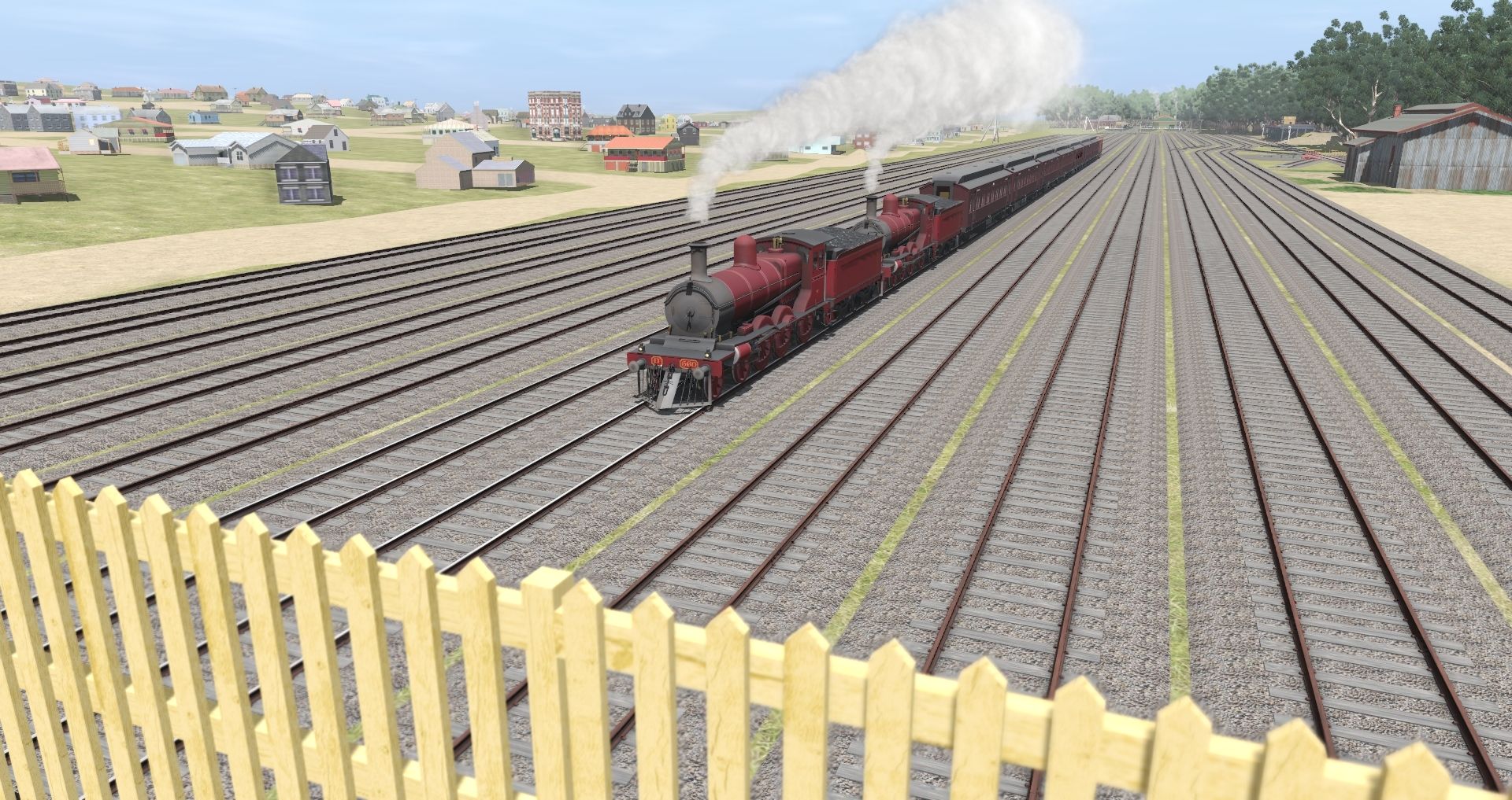 Tags: Trainz Railroad Simulator 2019, Sunshine - Bendigo, Default, VR DD T2 WW1 Red C BG, VR DD T2 WW1 Red C Ten BG, VR BW Crimson Dark/Grey Roof BG, VR ABW Crimson Dark/Grey Roof BG, VR AW Crimson Dark/Grey Roof BG, VR UB T1b - 1934+, VR Z Guards Van T1 1930s-1950s - BG