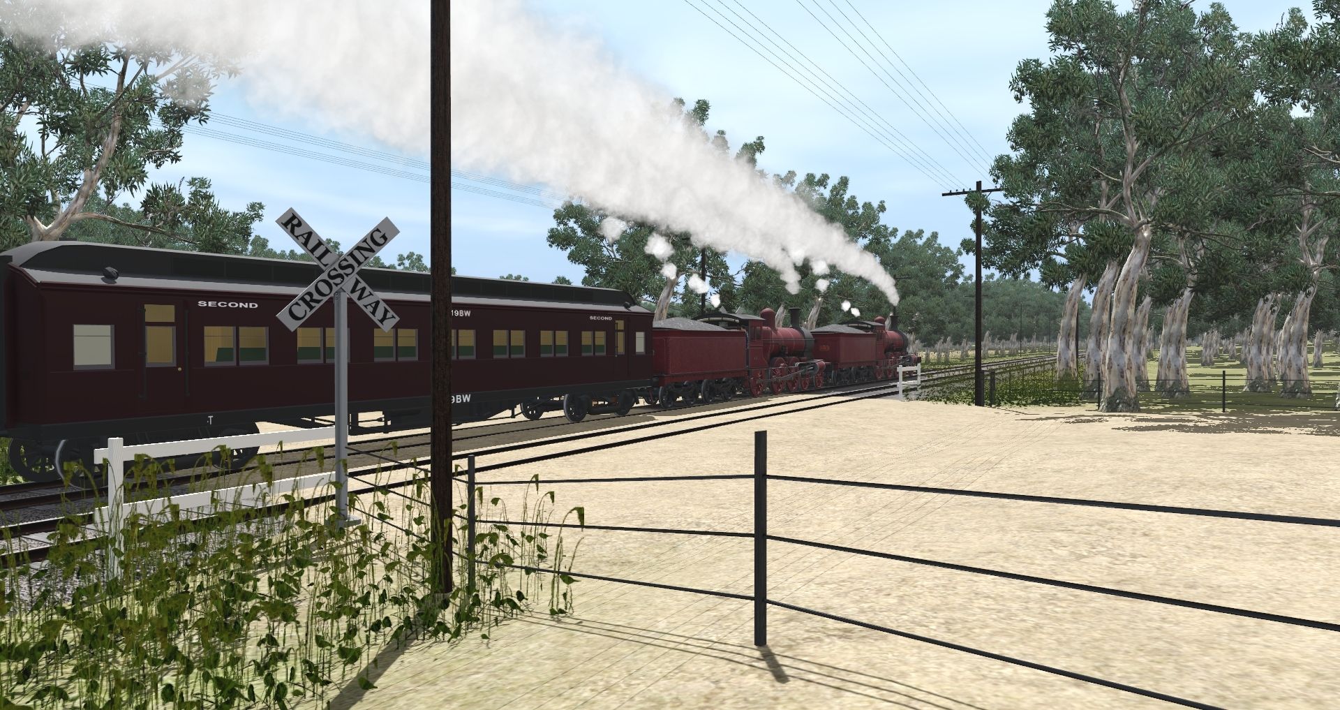 Tags: Trainz Railroad Simulator 2019, Sunshine - Bendigo, Default, VR DD T2 WW1 Red C BG, VR BW Crimson Dark/Grey Roof BG, VR ABW Crimson Dark/Grey Roof BG, VR DD T2 WW1 Red C Ten BG, VR AW Crimson Dark/Grey Roof BG, VR UB T1b - 1934+, VR Z Guards Van T1 1930s-1950s - BG