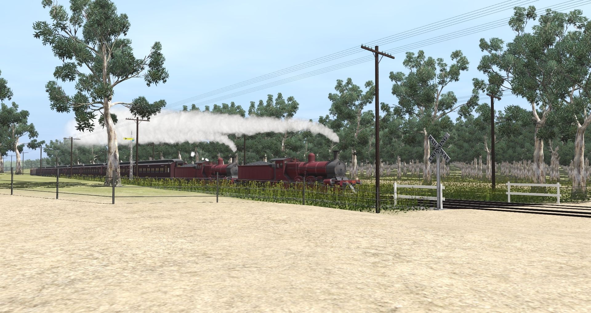 Tags: Trainz Railroad Simulator 2019, Sunshine - Bendigo, Default, VR DD T2 WW1 Red C BG, VR DD T2 WW1 Red C Ten BG, VR BW Crimson Dark/Grey Roof BG, VR ABW Crimson Dark/Grey Roof BG, VR AW Crimson Dark/Grey Roof BG, VR UB T1b - 1934+, VR Z Guards Van T1 1930s-1950s - BG