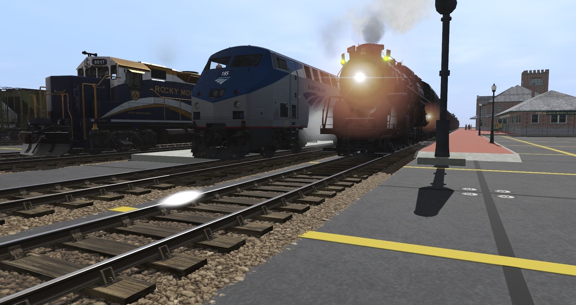 Tags: Trainz Railroad Simulator 2019, New Route, Default, NKP S-2 Weathered, AMTK P42DC ph V, RMRX GP40-2, C&O K-2 Mikado Engine, SRC 90 Engine V2, N&W J Class Engine, SRC E10a Engine V2, PRR A5 94 Engine, NREX ex-ATSF SD45-2u, KCS GP9 late, JRPX Locomotive Leasing #92