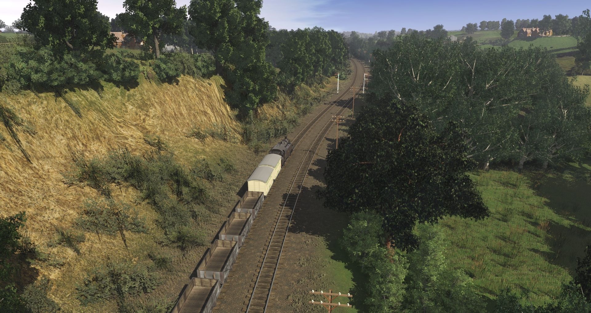 Tags: Trainz Railroad Simulator 2019, 1930s Cornish Mainline and Branches - Plymouth to Penzance, Default, Ivatt 2MT 2-6-2T - BR Late Crest, GWR FruitC (brown), Shepherd Neame van, W A Day Usk 5 Plank wagon dirty, GWR Engineers Wagon with sleepers load, GWR 20T Toad Brake Van Weathered, Whiteways Cyder vent van