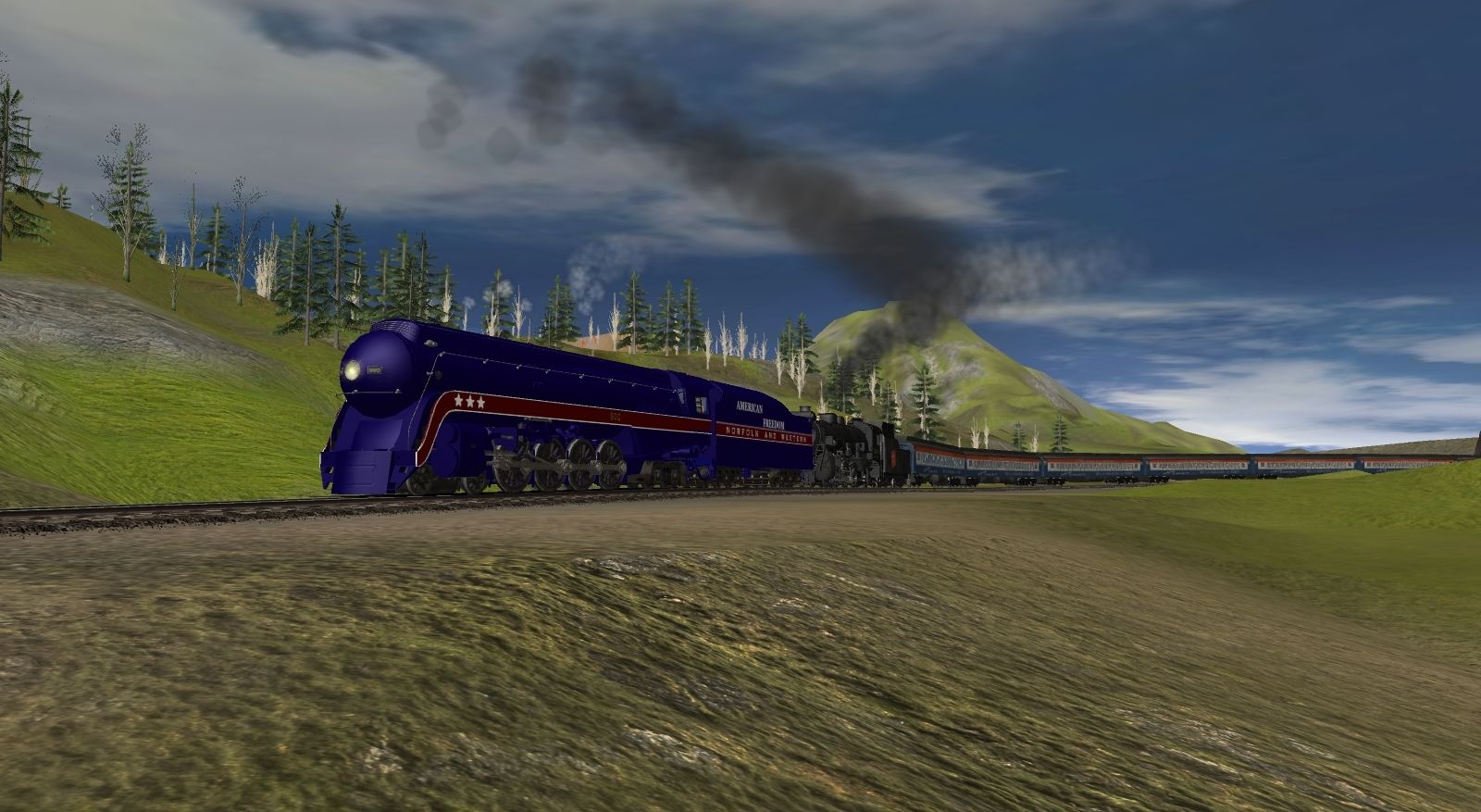 Tags: Trainz: A New Era, Kickstarter County, N&W Class J 600 AFT, CN 2-8-2 #3254, N&W Class J 600 AFT tender, CN 2-8-2 Tender #3254, LE&E Pullman coach Buy War Bonds 1