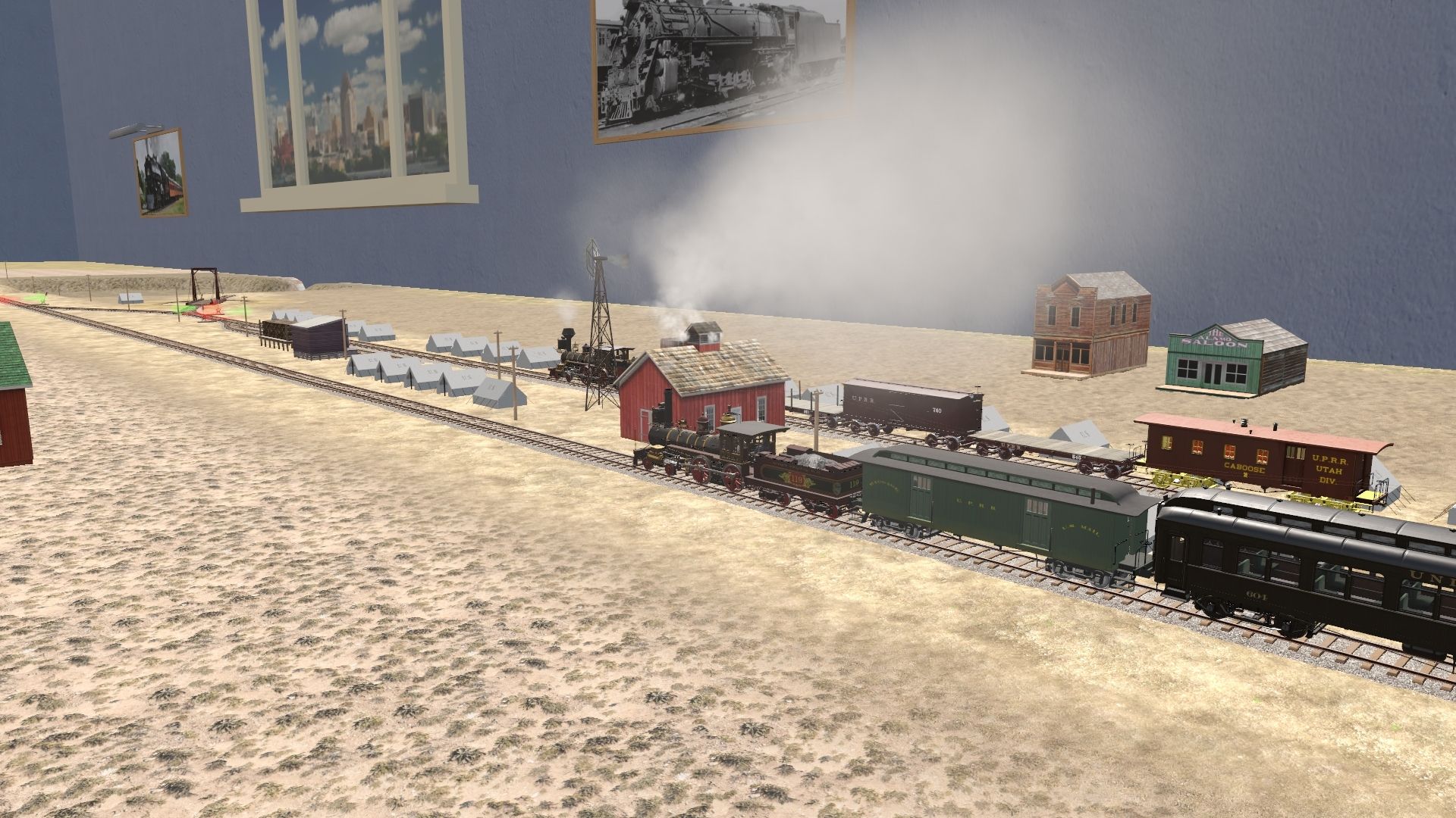 Tags: Trainz Railroad Simulator 2019, Promontory Model layout, trsr - Default, Union Pacific 119, Union Pacific 66, Central Pacific 60 'Jupiter, Central Pacific 62 'Whirlwind, UP Harriman Wood Chair Car As Built, Union Pacific Baggage / Mail Car, Union Pacific 119 Tender, Union Pacific Caboose (1860s) Utah Division, Union Pacific 30ft 1860s Platform Car 1, Union Pacific 28ft 1860s Boxcar 2, Union Pacific 30ft 1860s Platform Car 2