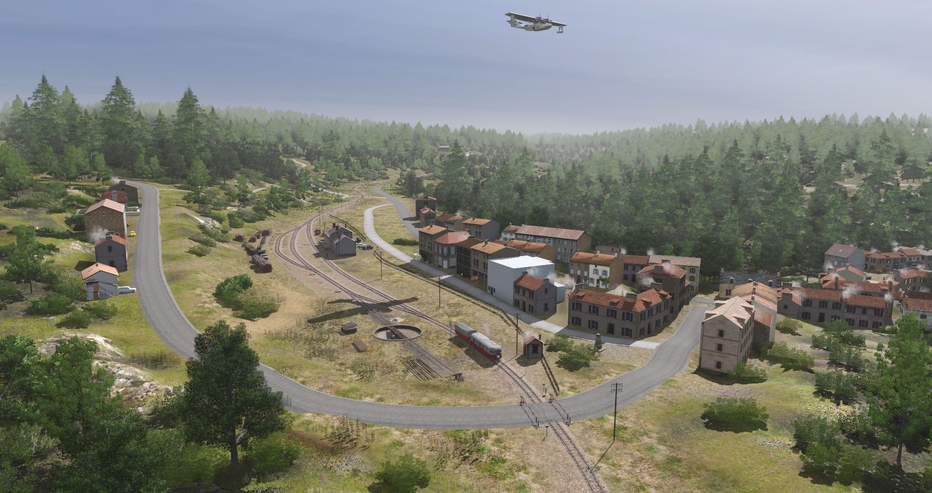 Tags: Trainz Railroad Simulator 2019, Le Cheylard sans textures 1960 bis, Le Cheylard sans textures 1960 bis - Default, CFD_autorail_A80_rouge_et_gris, Catalina PBY Flying Boat French Aeronavale Startup, Remorque messagerie Billard