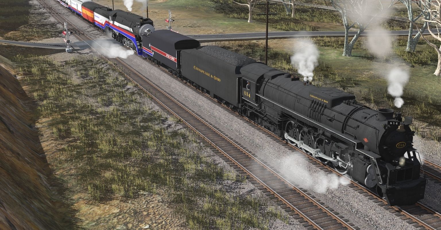 Tags: Trainz Railroad Simulator 2019, C&O Hinton Division, C&O 614 Engine, SP GS-4 #4449 1976 AFT Engine, C&O 614 Tender Excursion, AFT T1 Aux Tender, SP GS-4 #4449 1976 AFT Tender, SP GS-4 #4449 Daylight Auxillary Tender, AFT 01 Tool Car, AFT 02 Trailer Car, AFT 03 Trailer Car, AFT 04 Trailer Car, AFT 05 Showcase Car