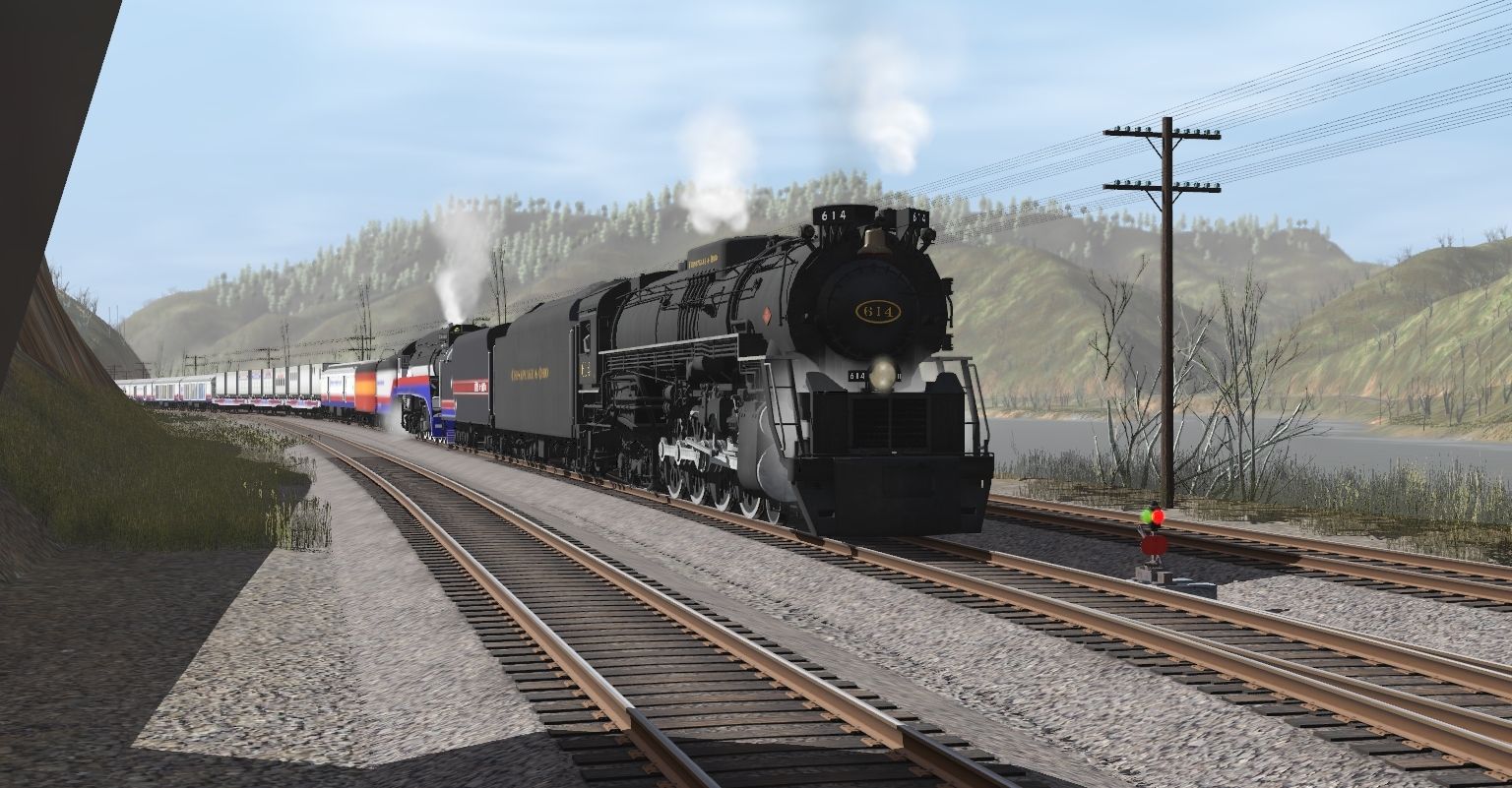 Tags: Trainz Railroad Simulator 2019, C&O Hinton Division, C&O 614 Engine, SP GS-4 #4449 1976 AFT Engine, C&O 614 Tender Excursion, AFT T1 Aux Tender, SP GS-4 #4449 1976 AFT Tender, SP GS-4 #4449 Daylight Auxillary Tender, AFT 01 Tool Car, AFT 02 Trailer Car, AFT 03 Trailer Car, AFT 04 Trailer Car, AFT 05 Showcase Car