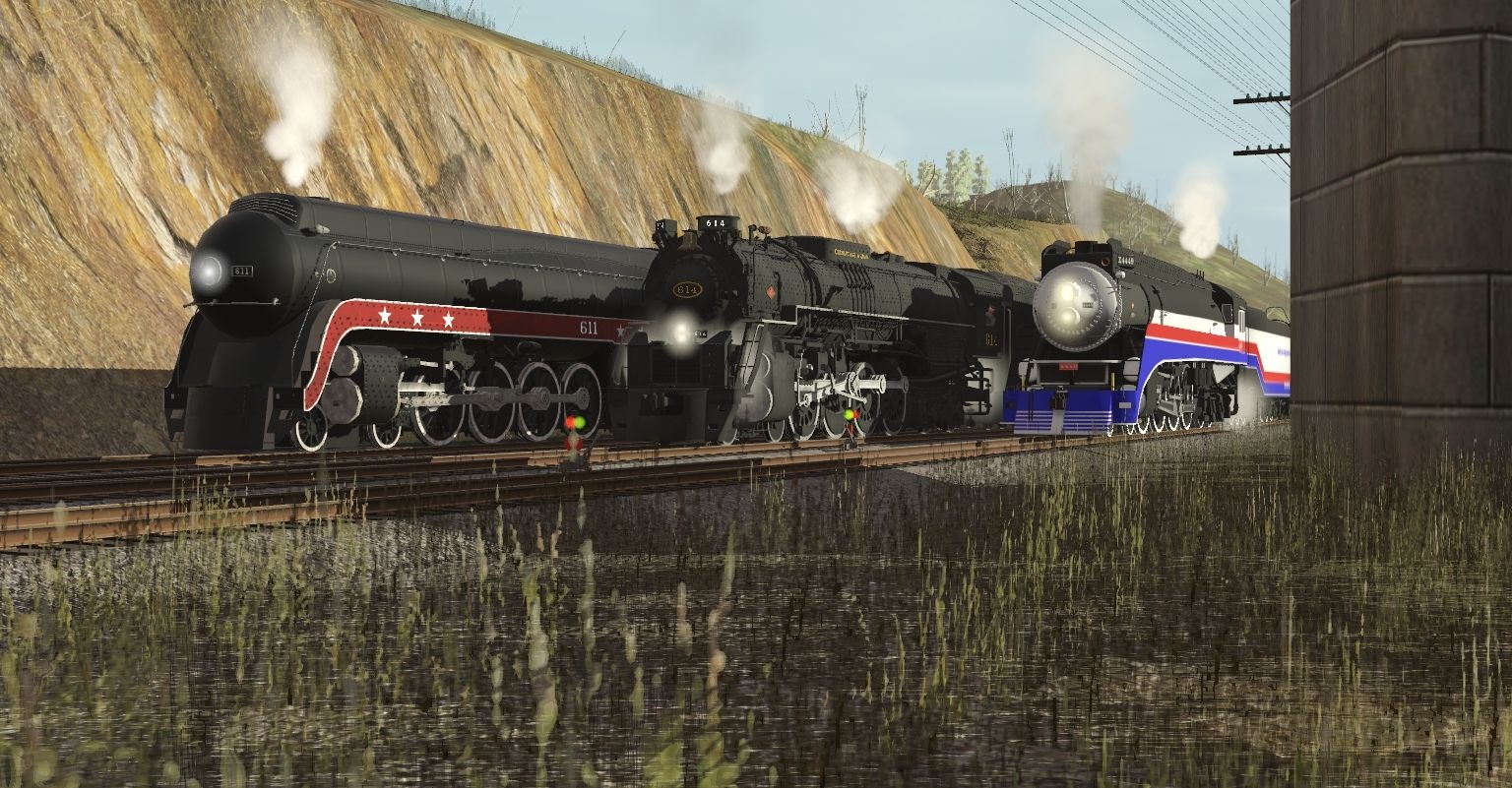 Tags: Trainz Railroad Simulator 2019, C&O Hinton Division, AFT Class J 611, C&O 614 Engine, SP GS-4 #4449 1976 AFT Engine, C&O 614 Tender Excursion, SP GS-4 #4449 1976 AFT Tender, AFT T1 Aux Tender, SP GS-4 #4449 Daylight Auxillary Tender, AFT 01 Tool Car, AFT 02 Trailer Car, AFT 03 Trailer Car, AFT 04 Trailer Car