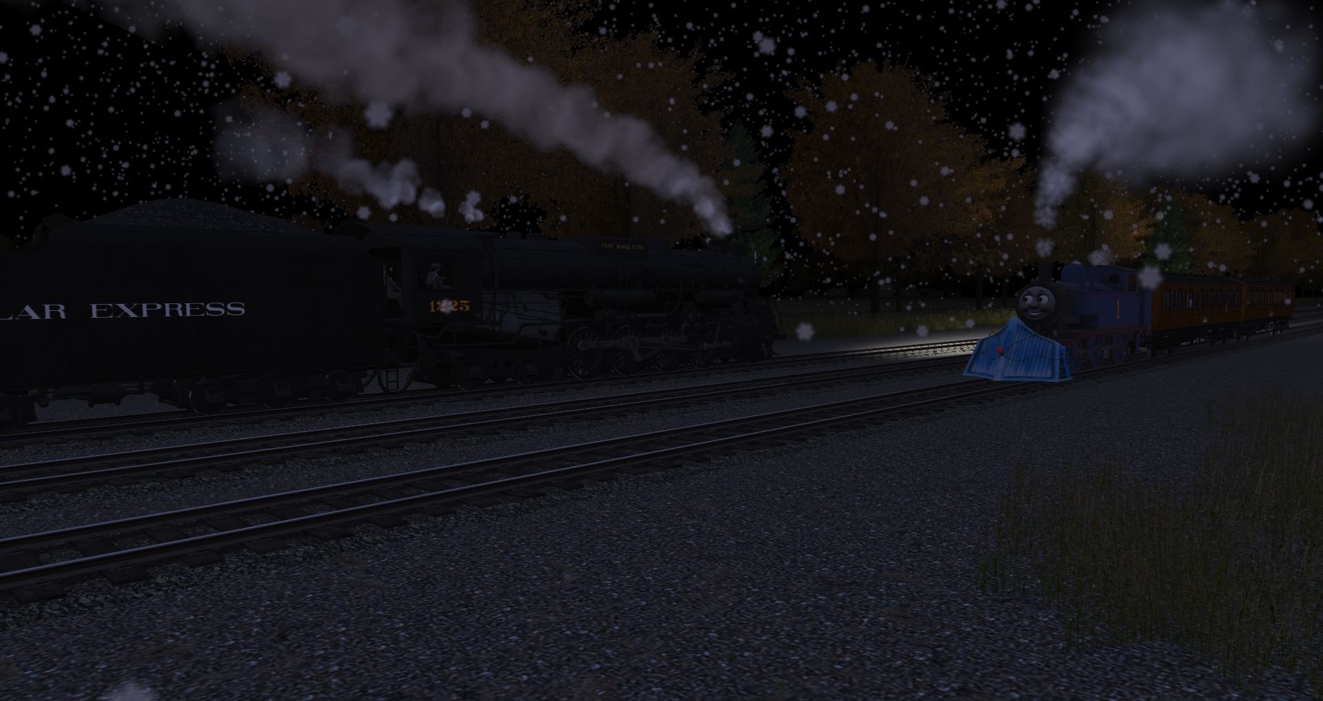 Tags: Trainz Railroad Simulator 2019, Indiana Western, The Polar Express, PM Berkshire Engine, RWS 3D - RWS Thomas, Polar Express Tender, Sodor Snowplough Light Blue (ver.1) (Snow off), NWR Annie With Face, NWR Clarabel With Face, Polar Express Coach, Polar Express Tail Car