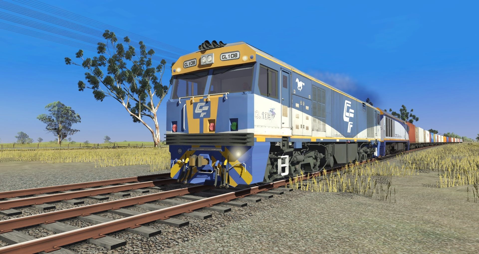 Tags: Trainz Railroad Simulator 2019, ARTC NSW Main South - VR North-East, typical north line SA, CFCLA GL Class, CFCLA EL, GWA AQQY Container Wagon Skin 2, GWA AQQY Container Wagon Skin 1