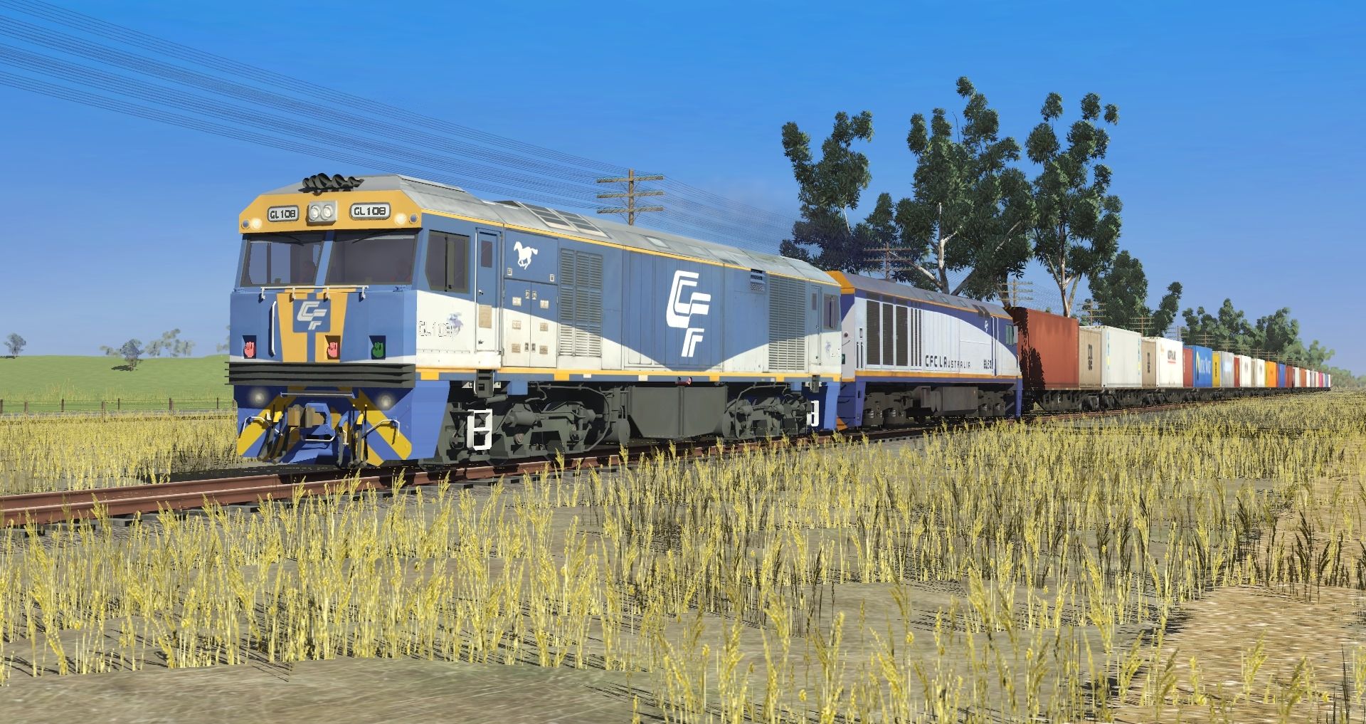 Tags: Trainz Railroad Simulator 2019, ARTC NSW Main South - VR North-East, typical north line SA, CFCLA GL Class, CFCLA EL, GWA AQQY Container Wagon Skin 2, GWA AQQY Container Wagon Skin 1