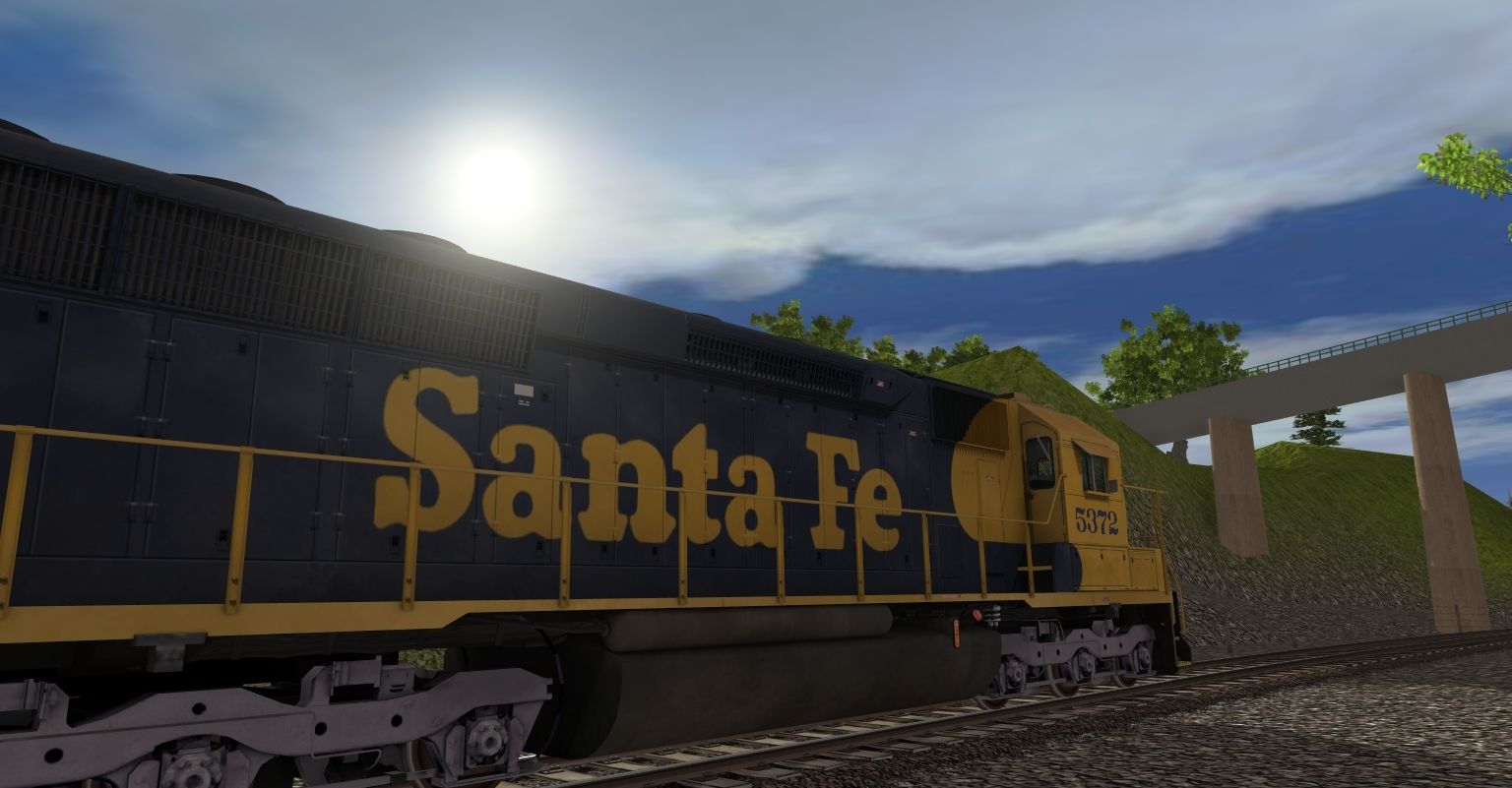Tags: Trainz: A New Era, Kickstarter County, FossilFuels, ATSF SD45, MN MOW GATX, GATX Oil Tanker, Oil Tanker UTLX 60 Ft, Penn Salt GATX Tanker