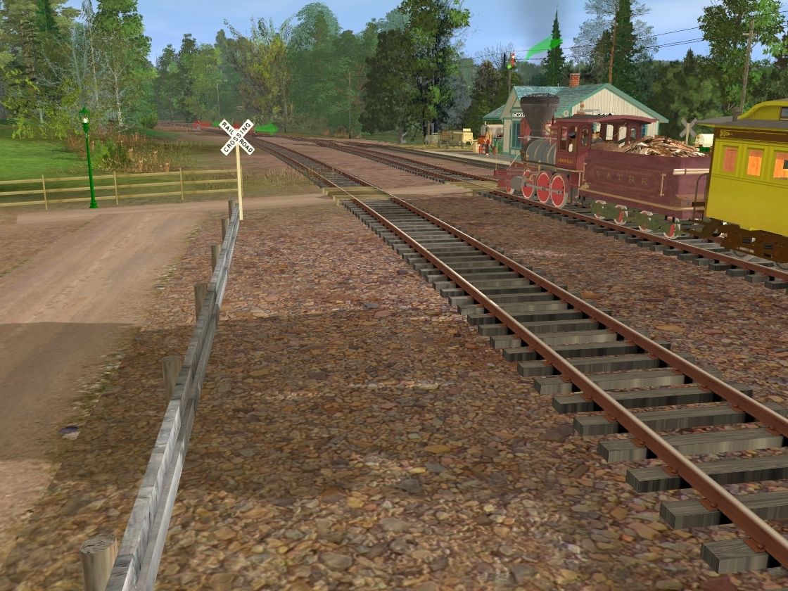 Tags: Trainz: A New Era, A _Black River & Utica RR, Default, V & T loco no 14 (Esmeralda) ca 1870's, V & T Coach No 3, V & T Baggage / Mail Car No 2, V & T loco no 14 tender ca 1870's, V & T Caboose No 6 yellow