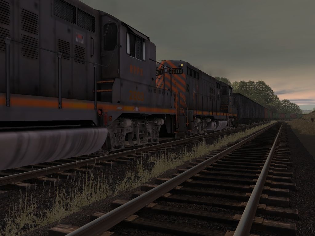 Tags: Trainz: A New Era, Coal Country, 03 - Coal Service, RPPX GP9 high, RPPX GP9 chop nose, RPPX Coach Car #20, RPPX Coach Car #22, RPPX Coach Car #21, RPPX 100 Ton Hopper, SVLX Log Rack Yellow