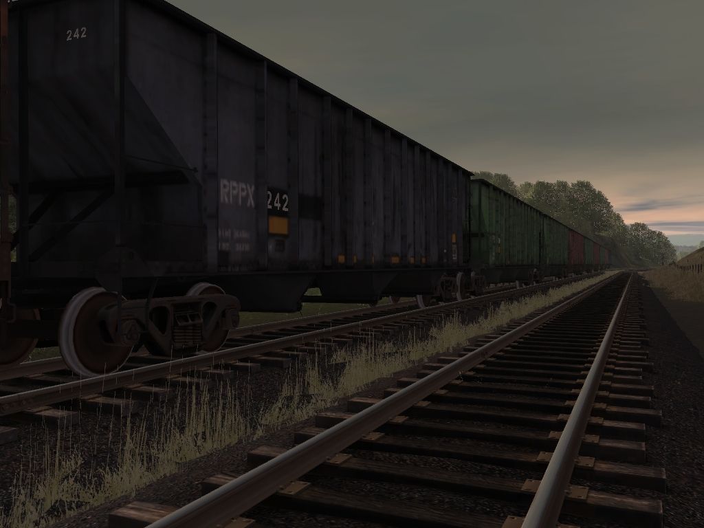 Tags: Trainz: A New Era, Coal Country, 03 - Coal Service, RPPX GP9 high, RPPX GP9 chop nose, RPPX Coach Car #20, RPPX Coach Car #22, RPPX Coach Car #21, RPPX 100 Ton Hopper, SVLX Log Rack Yellow