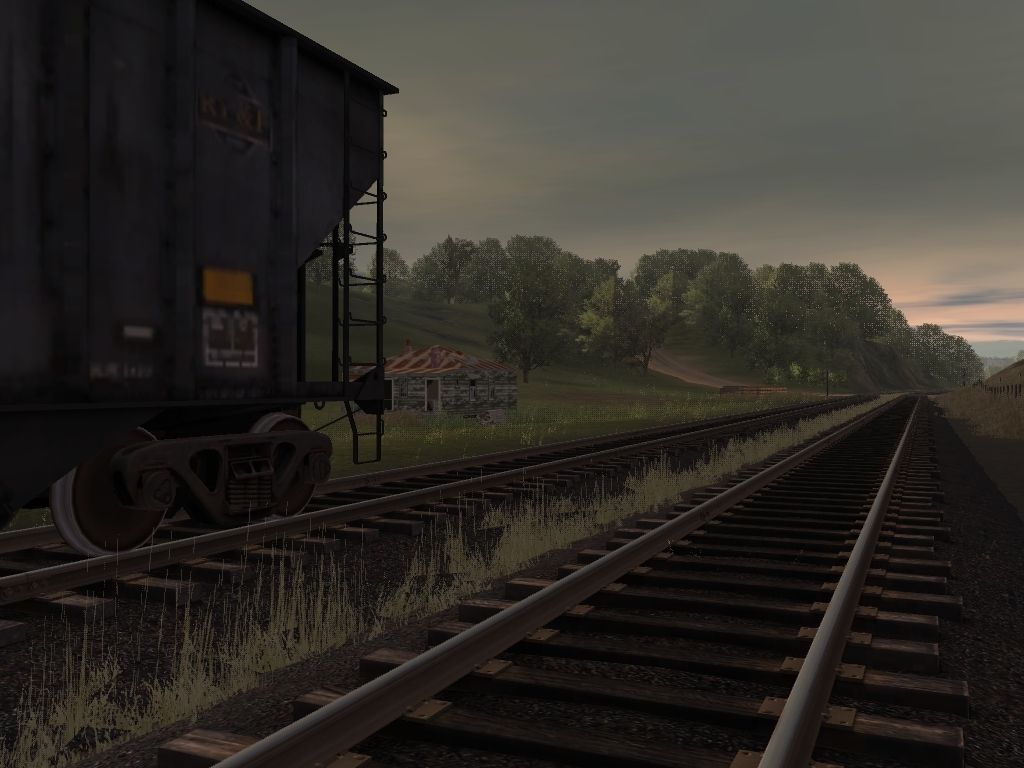 Tags: Trainz: A New Era, Coal Country, 03 - Coal Service, RPPX GP9 high, RPPX GP9 chop nose, RPPX Coach Car #20, RPPX Coach Car #22, RPPX Coach Car #21, RPPX 100 Ton Hopper, SVLX Log Rack Yellow